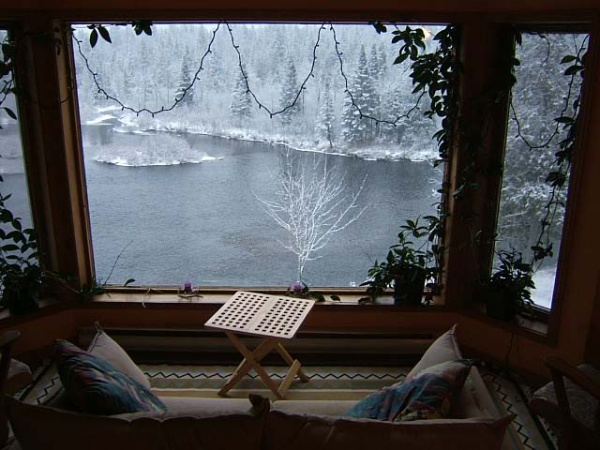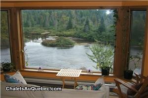 Notre maison a une vue magnifique sur la rivière Ouareau et les montagnes - Elle est meublée, équipée et décorée avec goût et est très spacieuse. Il y a 2 chambres fermées dont une avec bassinette et un lit queen et une deuxième avec un lit double et un lit simple (superposé). Il y a un très grand salon avec baie windows d'ou il fait bon admirer le paysage ou lire un bon livre - 2 coins salon dont un avec un poele à combustion lente et décor en pierre des champs