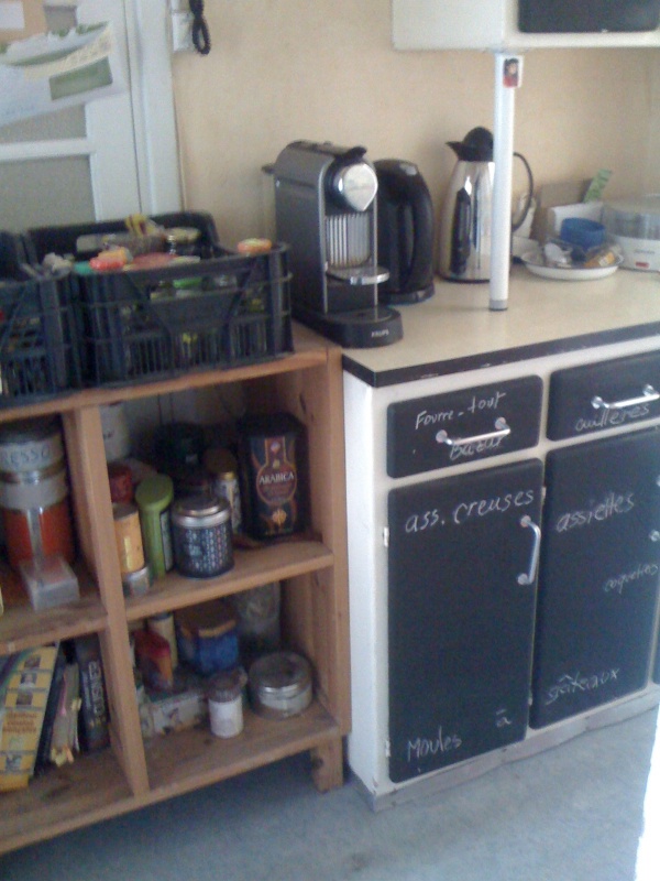 - 1 cuisine (photo) : double évier, gazinière (gaz de ville), frigo avec compartiment congélateur, lave-linge, plan de travail, table, 4 tabourets, chaudière au gaz de ville (chauffage central) très simple à utiliser