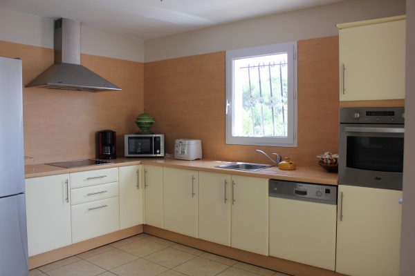 Villa de plain pied composée de trois grandes chambres, d'une pièce à vivre de 50m² , toute équipée.