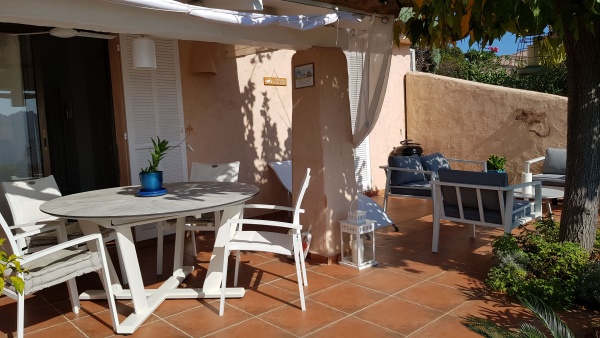 Notre maison est une « mini-villa » de 40 m2, avec une terrasse de 27 m2, vue splendide sur la baie de Santa Giulia.